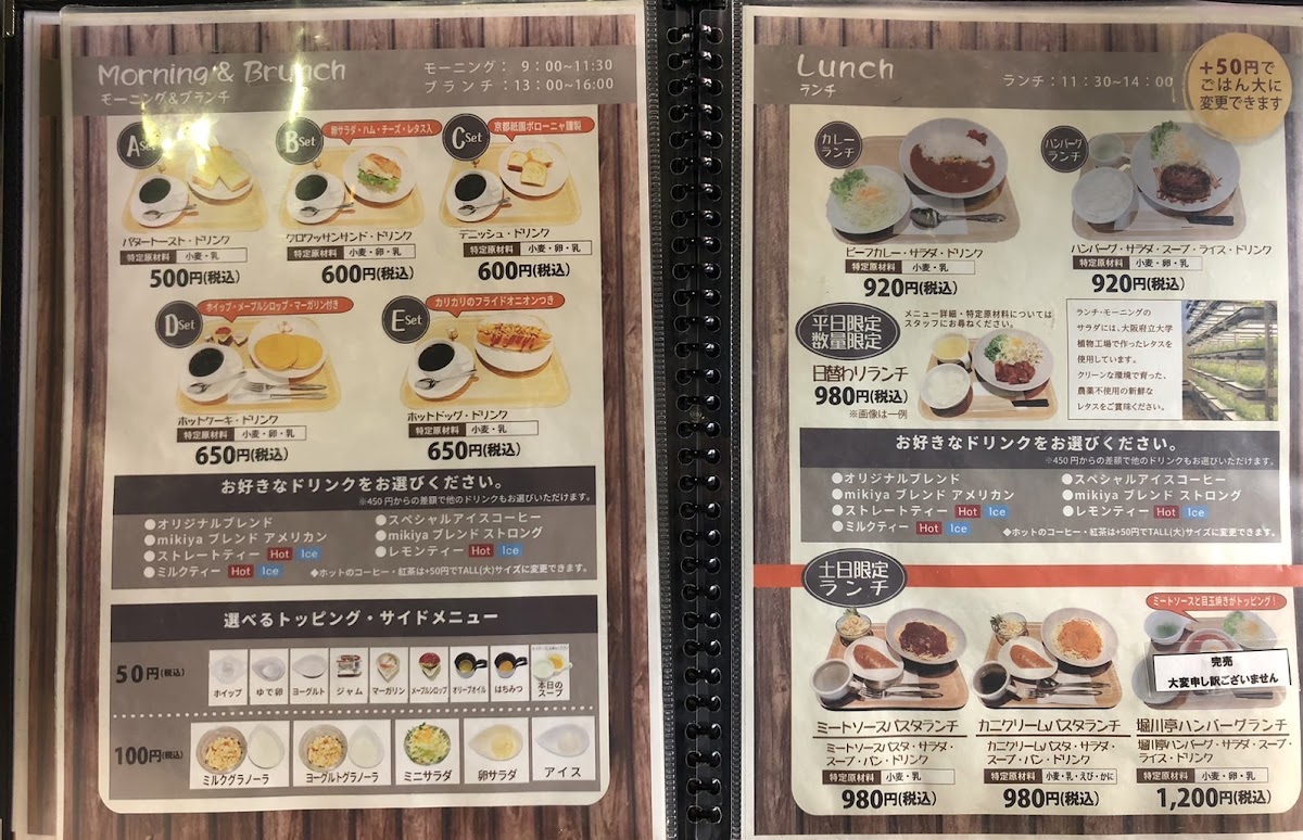 For those looking for a light meal in the afternoon (1:00 PM to 4:00 PM), consider the たっぷり卵のトースト or the indulgent ハニーデニッシュトースト, both available at an incredibly reasonable price. Whether you're catching up with friends or enjoying a quiet moment alone, Mikiya offers an experience rooted in comfort and quality.